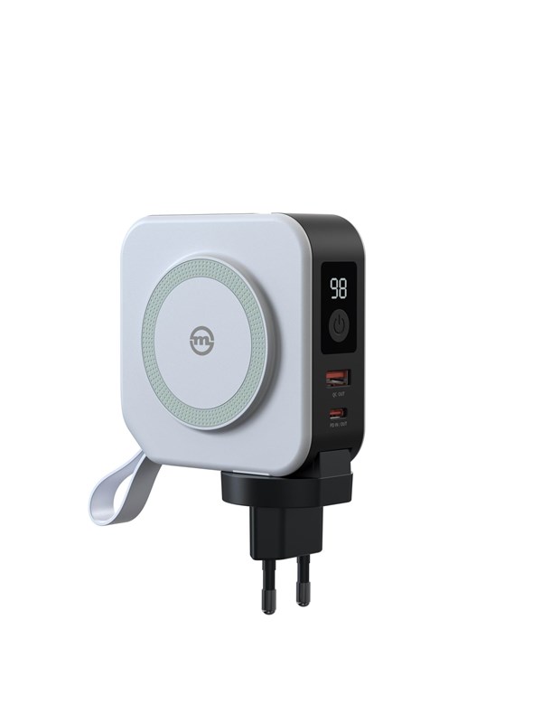 Mobile Origin Travel Charger with powerbank, whiteUniversal Charging Device for Travel with High Capacity:Experience worry-free travels with the innovative Mobile Origin Travel Charger, designed to meet all your on-the-go charging needs.Wireless charging: