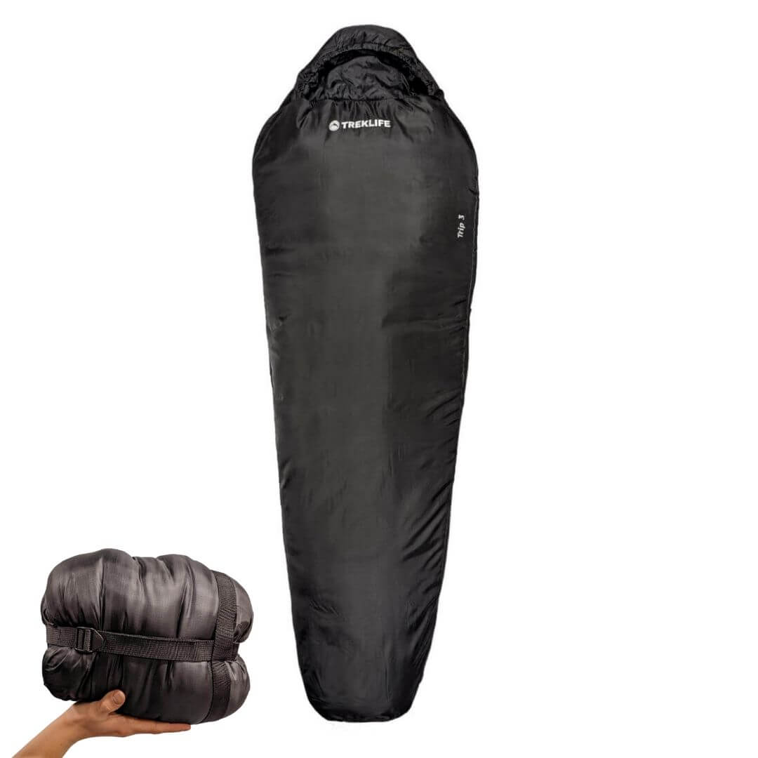Denne sovepose i modellen Trip 3 Short er fra Treklife, som har lavet en høj value-for-money sovepose. Soveposen er lavet i et mumie-design, som reducere vægt og øger isolering. Trip 3 er en såkaldt 3 sæsons sovepose, hvilket vil sige den kan bruges 3/4 a